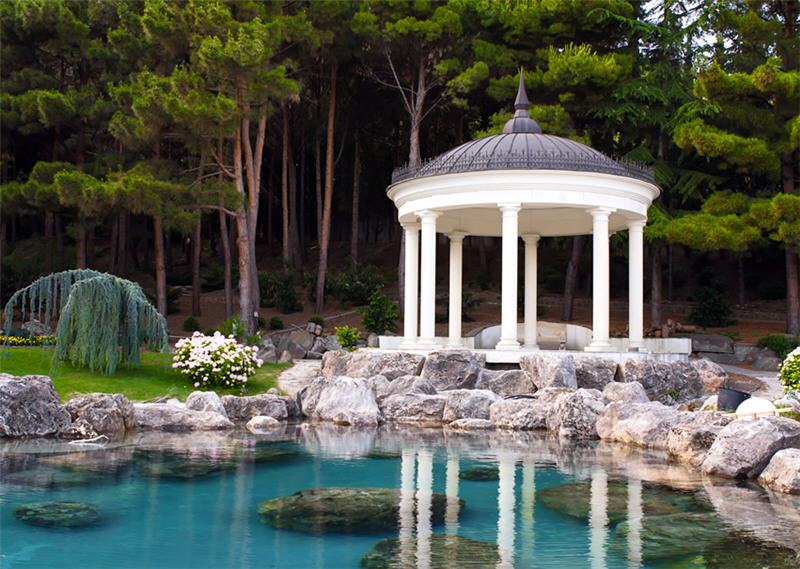 Desain ini dapat diterapkan bagi Anda yang memiliki taman dengan bunga dan berbagai macam tanaman. Sebab, gazebo dengan desain paviliun ini umumnya terbuka di semua sisi dengan atap berbentuk oktagon, sehingga orang di dalam tetap dapat berinteraksi langsung dengan tanaman sekitar. Ukuran paviliun juga lebih besar dari gazebo lainnya, nggak heran kalau Anda banyak menemui gazebo jenis ini di taman-taman umum. Jika Anda tetap ingin memiliki gazebo dengan desain paviliun DI LAHAN kecil, Anda dapat membuatnya dengan versi mini.